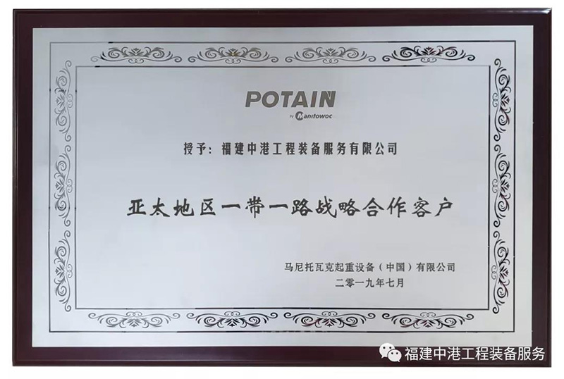 作為一家綜合性專業(yè)化工程裝備服務(wù)公司,中港公司立足“高起點(diǎn)建設(shè)、高質(zhì)量管理、高效能運(yùn)作、高標(biāo)準(zhǔn)服務(wù)”的高地平臺(tái),始終如一堅(jiān)持規(guī)范運(yùn)作、科學(xué)管理,憑借全方位的技術(shù)支持、強(qiáng)大的設(shè)備實(shí)力和安全可靠的安裝維修能力,贏得了顧客的忠誠(chéng)和美譽(yù)。先后榮獲“中聯(lián)重科五千萬(wàn)級(jí)戰(zhàn)略合作伙伴”、“中建二局第一建筑工程有限公司AAA誠(chéng)信供方”、“第十三屆全國(guó)建筑機(jī)械租賃企業(yè)設(shè)備管理優(yōu)秀單位”、“中建二局第一建筑工程有限公司2015年度優(yōu)秀分供方”、“中建海峽建設(shè)發(fā)展有限公司2016年優(yōu)秀合作企業(yè)”、“中建三局集團(tuán)有限公司(粵)2017年度良好合作單位”、“2018年全國(guó)建筑施工機(jī)械租賃50強(qiáng)企業(yè)”、“廣東省建筑機(jī)械租賃、安裝企業(yè)信用評(píng)價(jià)B級(jí)”、“2020年中國(guó)塔機(jī)租賃50強(qiáng)”等。